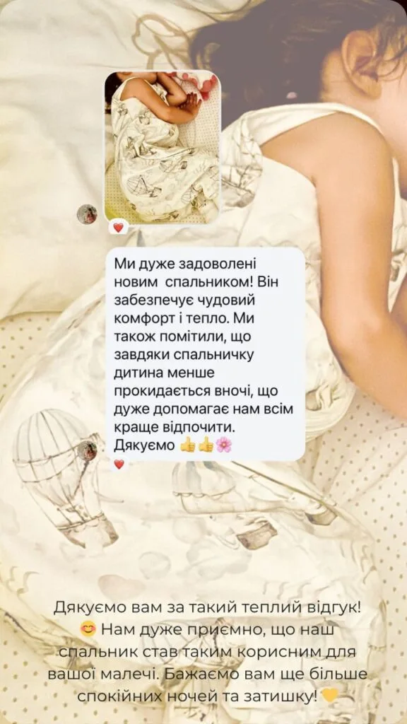 Ми цінуємо кожен ваш відгук, адже саме ваша думка допомагає нам ставати кращими! Діліться враженнями, щоб разом створювати ще більше тепла, затишку та щасливих снів для діток.