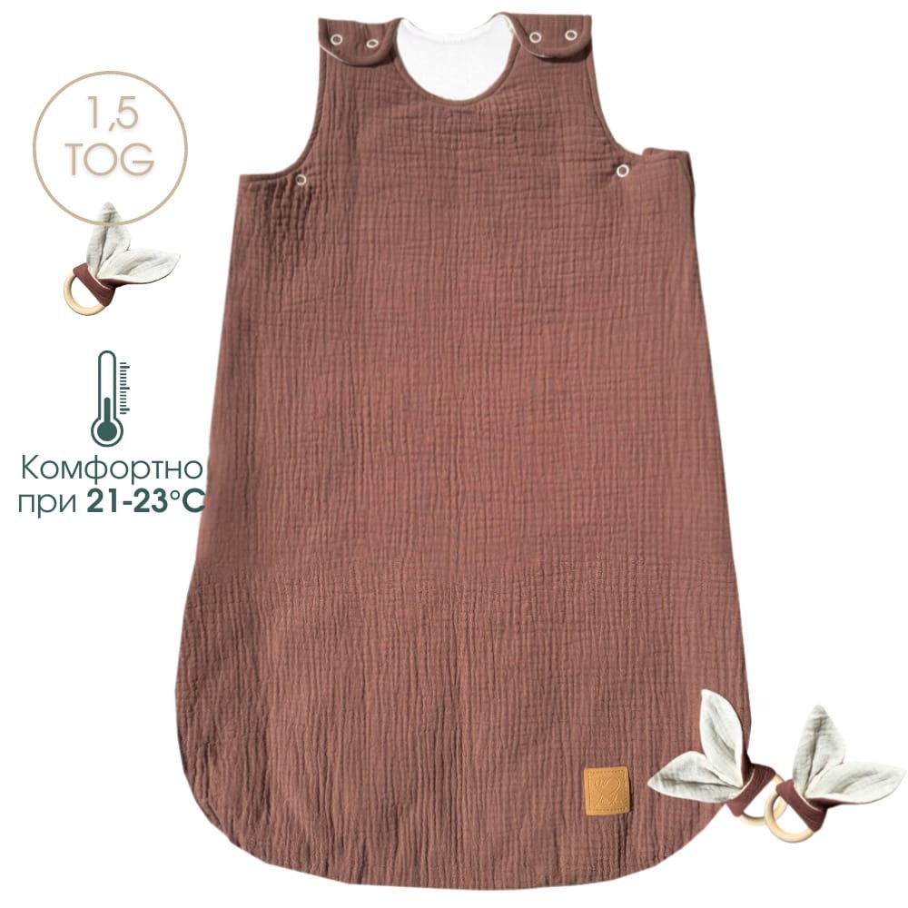 Демісезонний мусліновий спальник «Карамелька» забезпечує комфортний і безпечний сон вашому малюку в міжсезоння. Завдяки легкості та повітропроникності органічної бавовни, він підтримує оптимальний мікроклімат у приміщеннях з температурою 21–23°C. Спальник запобігає перегріванню та утримує приємне тепло, дозволяючи дитині спати спокійно. Рекомендації щодо одягу: легка піжама з довгим або коротким рукавом залежно від температури в кімнаті.