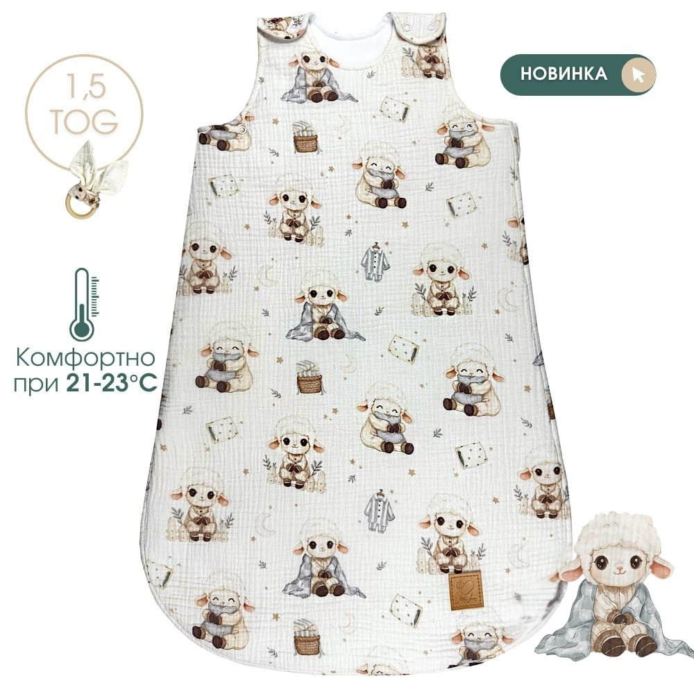 Демісезонний мусліновий спальник для немовлят «Овечка Дрімка »